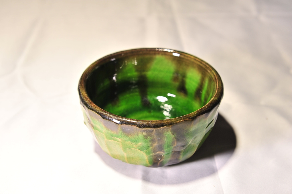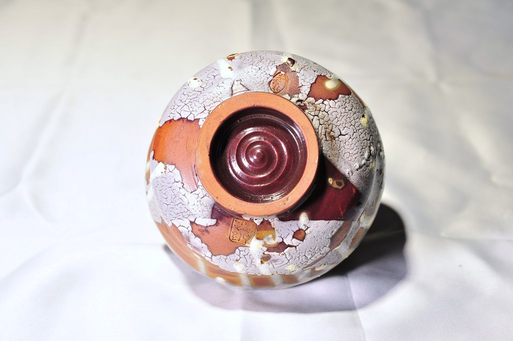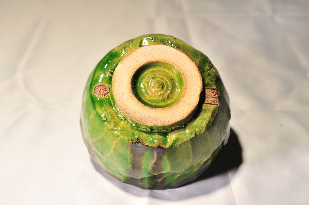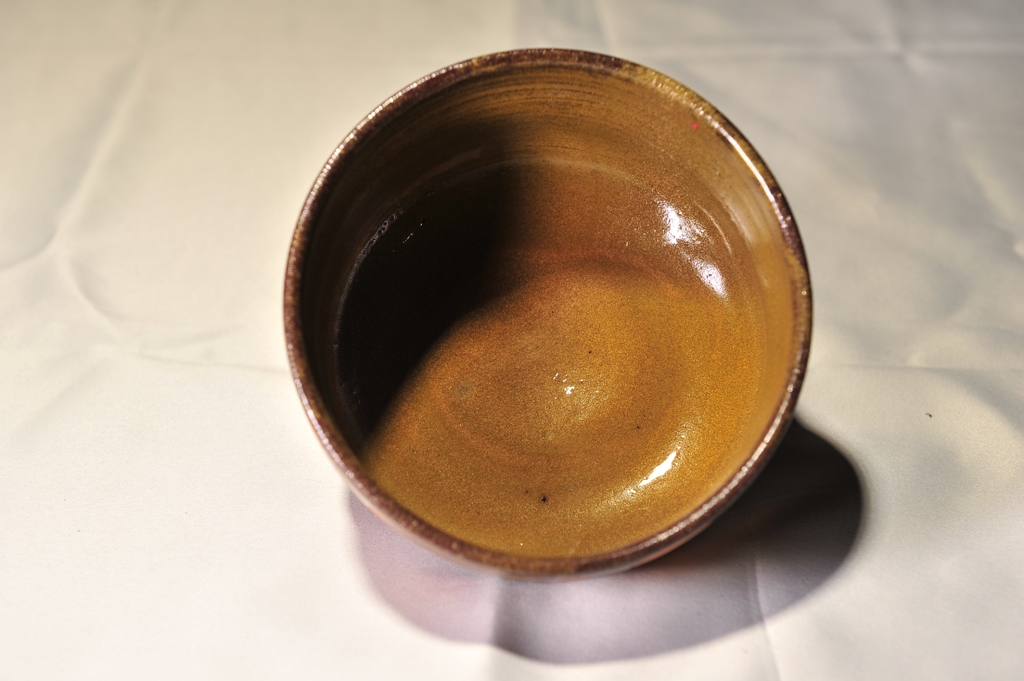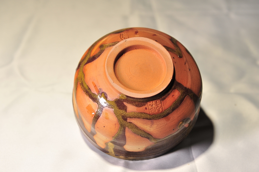 一度素焼きしたのちに金蕎麦釉を施し、1230℃にて焼成しています。