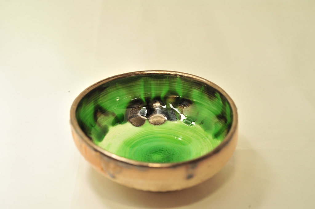 口縁に付けた孔雀ラスターが流れ過ぎたか・・・^^;