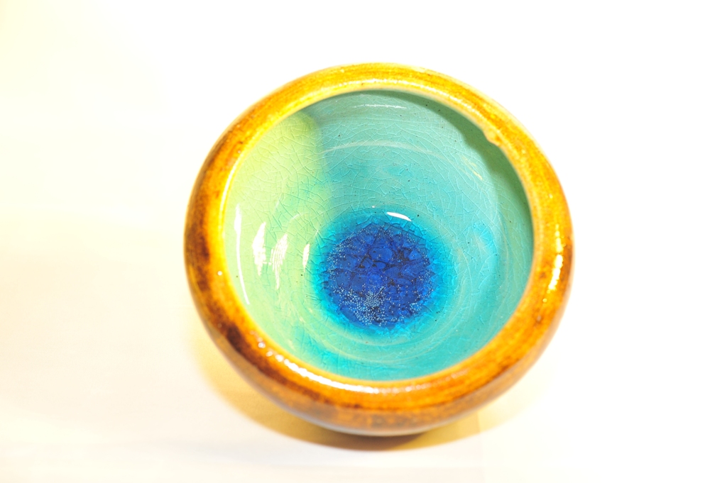 銅の削り粉を混ぜた釉薬に、他の色んな釉薬を微量に混ぜ込み、厚がけした。